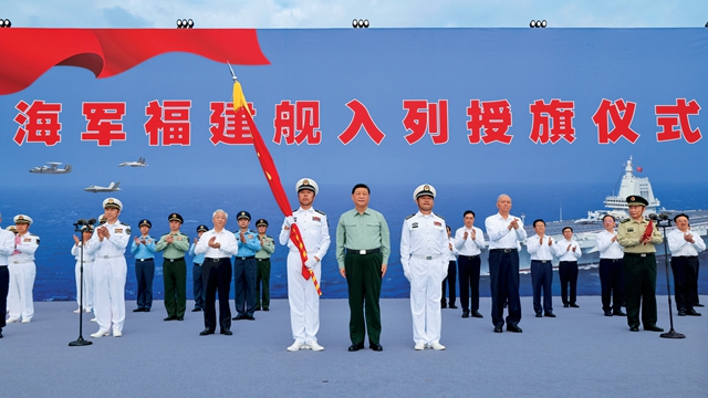 我国第一艘电磁弹射型航空母舰入列习近平出席入列授旗仪式并登舰视察