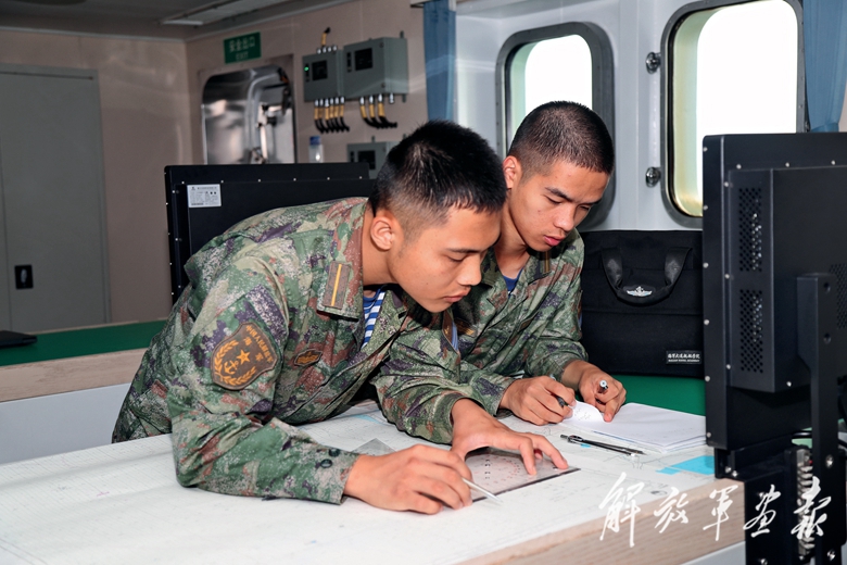 实习学员进行海图作业。