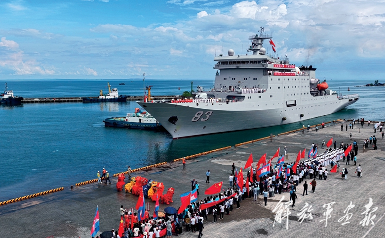 当地时间10月10日,海军83舰编队抵达柬埔寨,受到热烈欢迎。