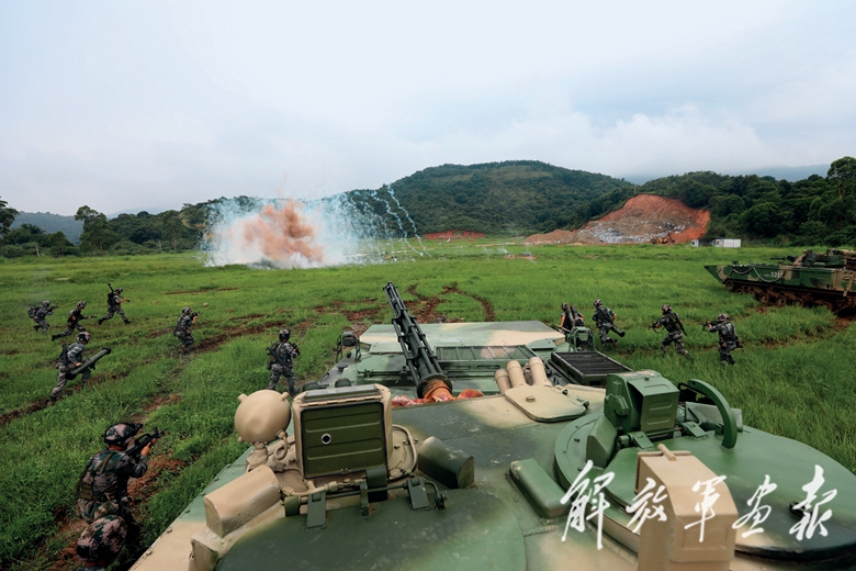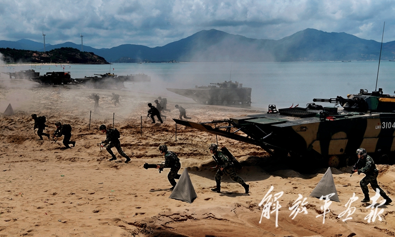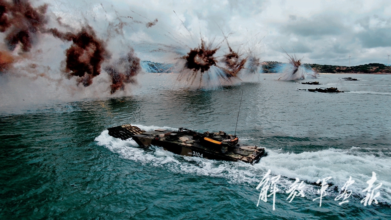 盛夏,粤东某海域风急浪高,一场两栖战车海上进攻战斗演练正在进行。随着指挥员一声令下,陆军第74集团军某旅“硬骨头六连”官兵驾驶两栖战车踏波蹈浪,向目标滩头发起冲击。
