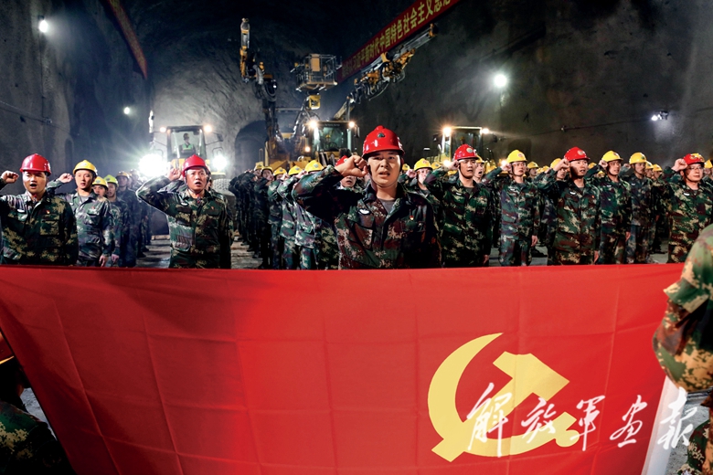 当好兵、能入党,不仅是乡亲们的深情嘱托,也是沙子呷的奋斗目标。入伍后,他总是冲在最难处、干在最险处。那一次,连队在海拔3000多米的工地作业,高寒缺氧、风沙漫天。沙子呷作为先遣队员战塌方、排险情、蹚新路,成为独当一面的业务骨干。工程开工仪式上,沙子呷火线入党,面对鲜艳的党旗,他流下了热泪。