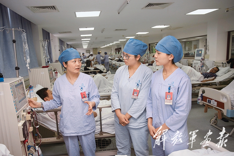 海军军医大学第二附属医院血透中心病房里,陈静俯下身子,认真调校着血透机,她神情专注、动作娴熟、一丝不苟。这一幕,与半年前她值守在武汉火神山医院重症监护病房时的情景,如此相似。