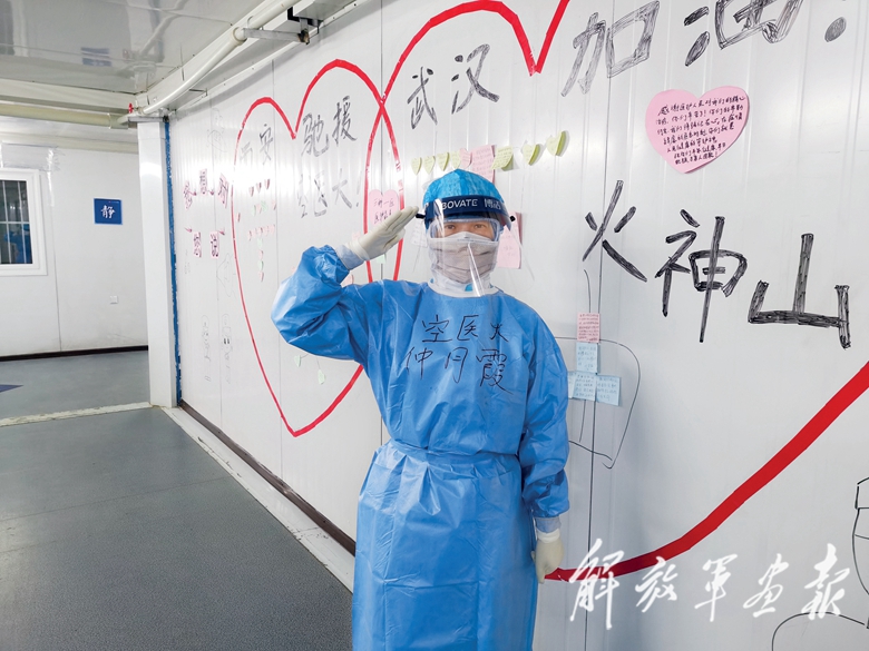 2月初,接到上级命令,仲月霞带领战友转战火神山医院。在那里,她负责医护人员防护知识和操作技能培训,以及流程监督落实等工作。她形容自己是拿着“放大镜”端详防护装备,捧着“显微镜”审视穿脱细节。