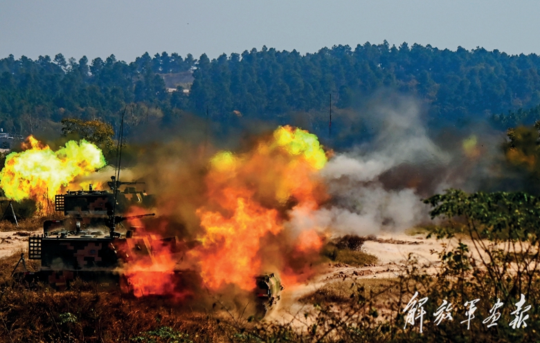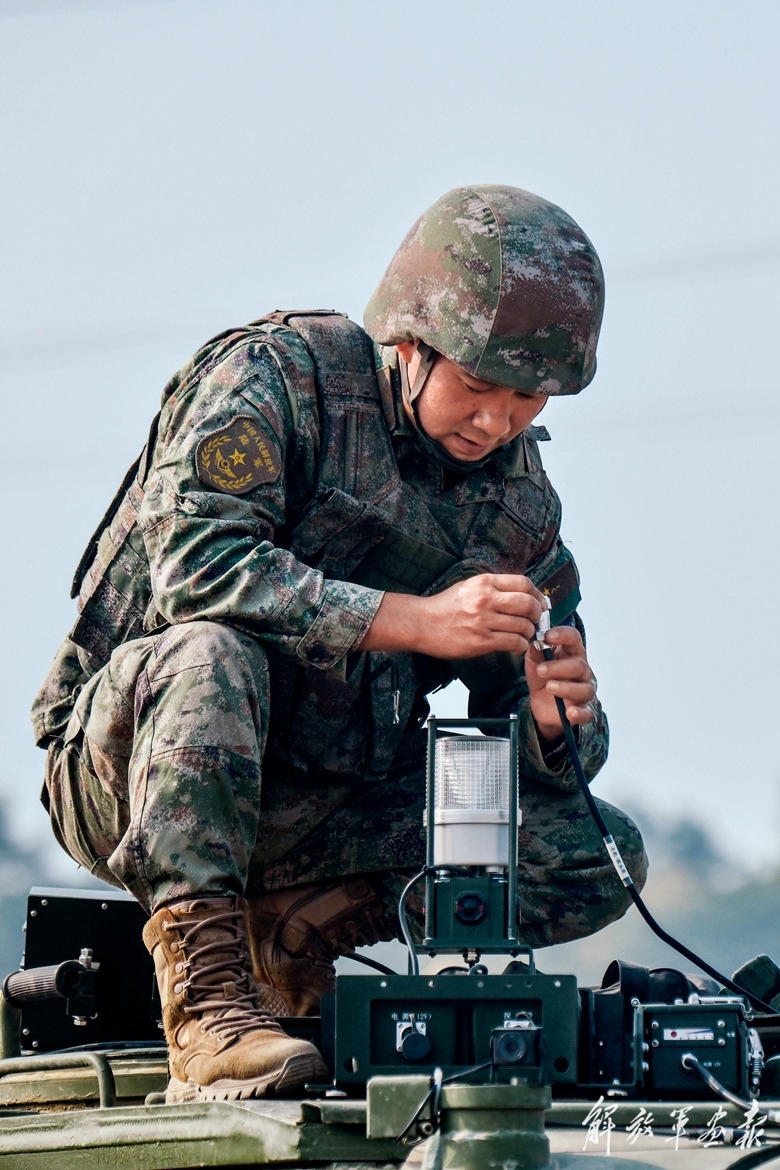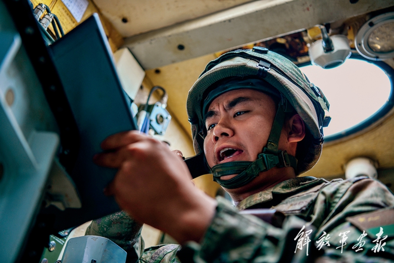 “‘敌’对我实施强电磁干扰!”激战正酣,指挥通信突然中断,红方进攻陷入迟滞。危急时刻,红方指挥员果断下令进行反制,切换备用通信频段,启动反电磁干扰,通信系统很快恢复正常。此时,渗透至“敌”后方的侦察分队发现重要目标,指挥所快速分析定位“敌”位置信息,呼叫火力分队进行抗击……