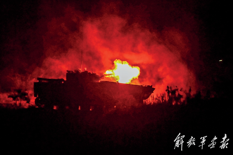 战斗持续至深夜,战场态势不断变化,生化袭击、“敌特”袭扰等情况接踵而至,红蓝双方你来我往,灵活采用多种战术手段进行对抗,部队指挥控制、火力运用、战斗协同等体系作战能力在激烈博弈中得到检验。