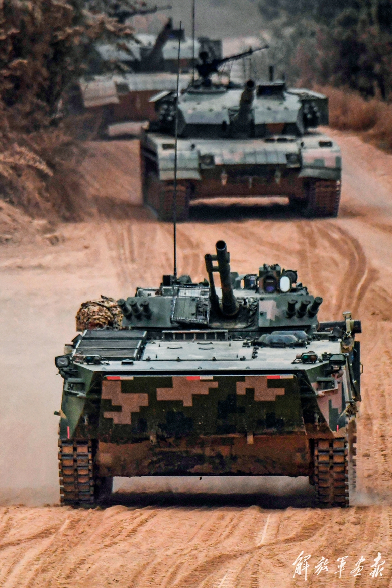 深秋山野,铁甲列阵。破晓时分,伴随着隆隆的马达声,陆军某旅多型战车混合编组、兵分多路迅疾奔向目标地域,一场红蓝实兵实弹对抗训练拉开战幕。