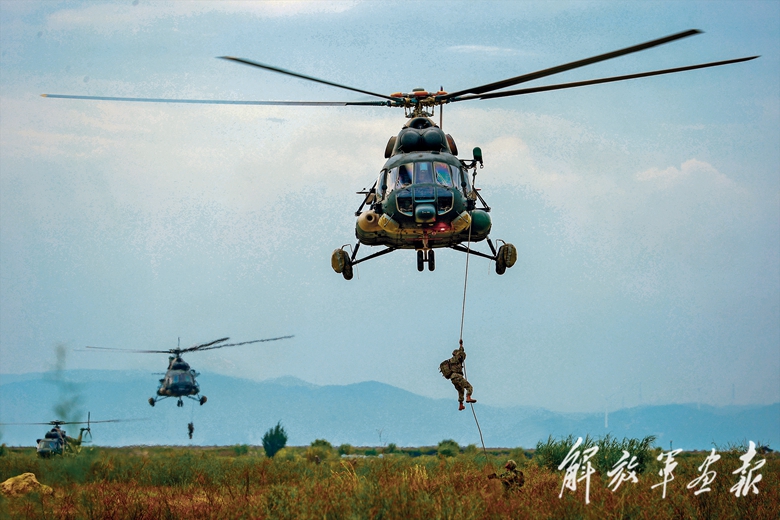 机降分队进行索降。