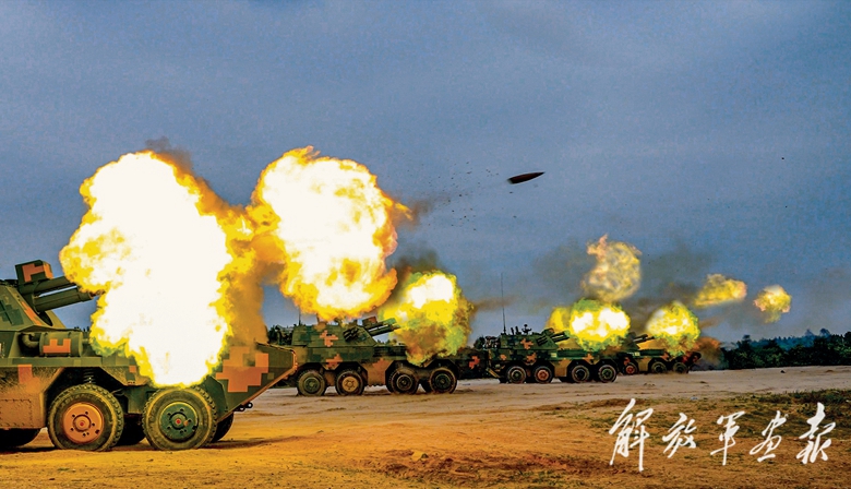 火力分队对目标进行猛烈打击。
