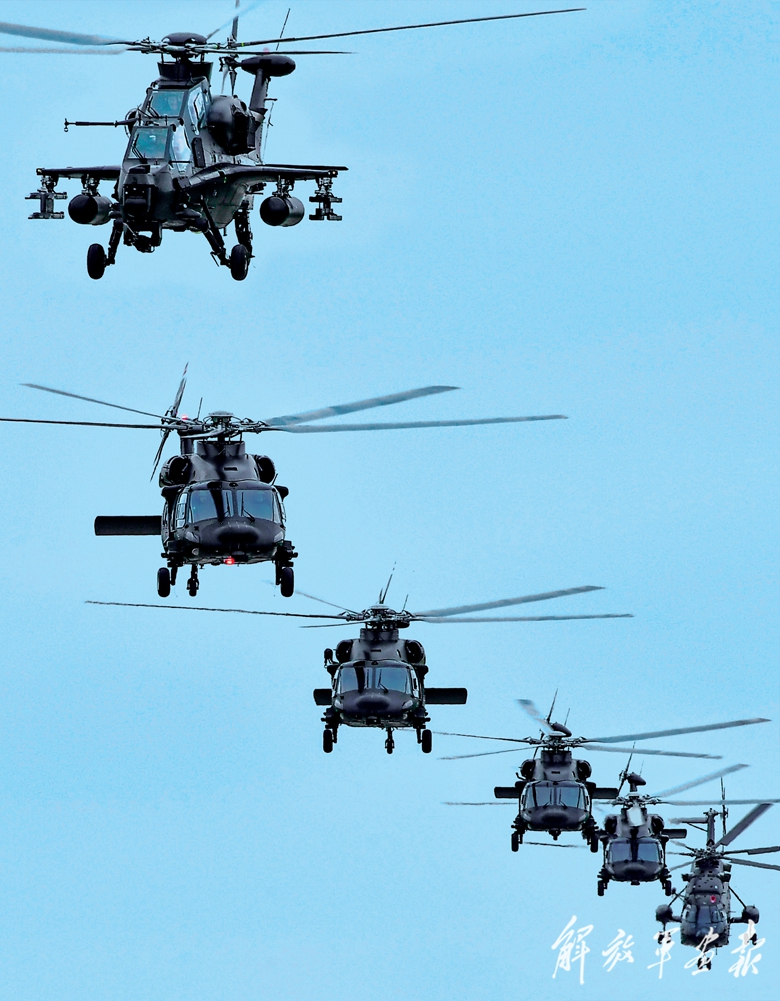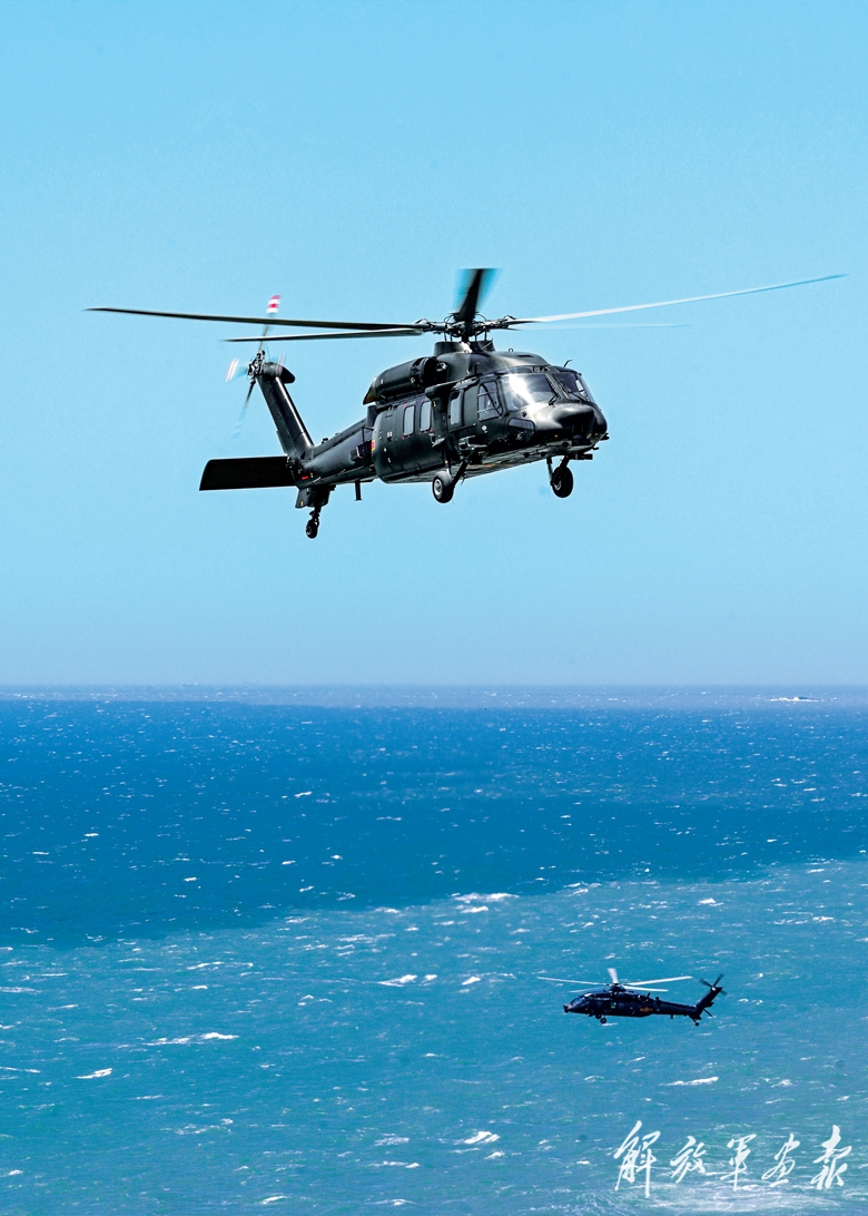 直升机编队飞赴目标海域。
