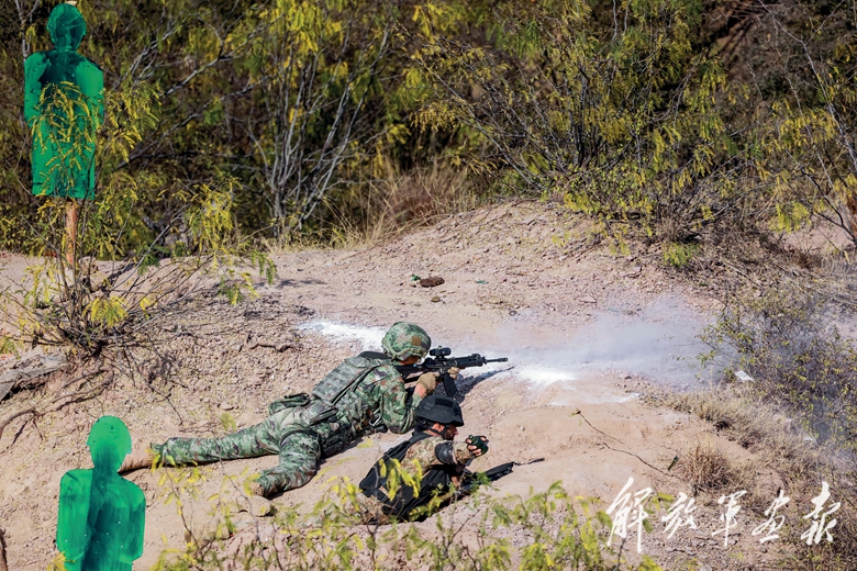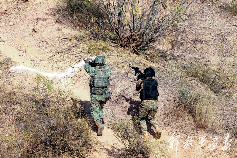 中巴参演官兵交替掩护追剿“恐怖分子”。