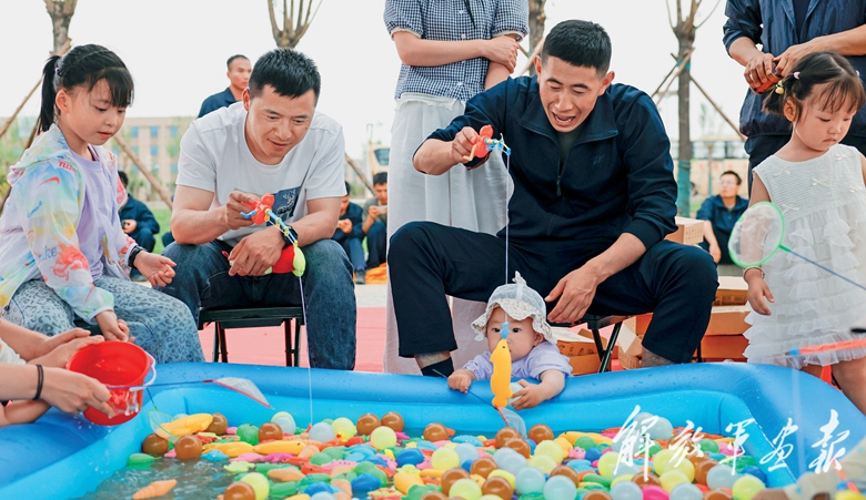 营区内,亲子运动会气氛热烈,一个个家庭配合默契、场面温馨;军营美食节深受欢迎,一道道美味佳肴令人垂涎欲滴;钓鱼、趣味射击、套圈等互动游戏区人气最旺,欢声笑语点亮了高原的夜色……
