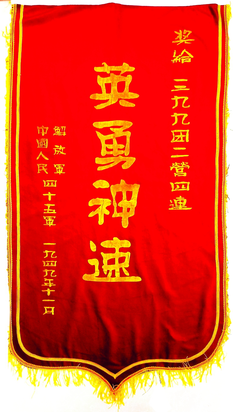 连队荣誉室珍藏的“英勇神速” 战旗。