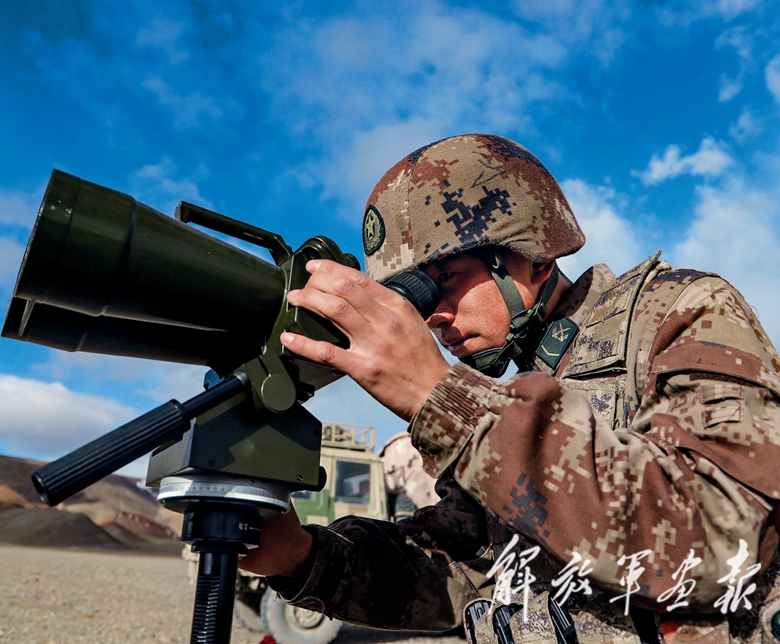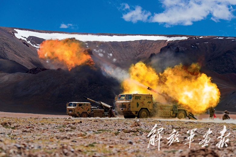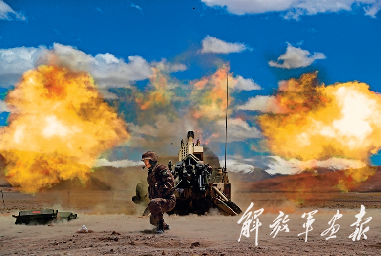 “放!”随着指挥员一声令下,炮弹怒吼出膛,阵地上顿时扬起漫天烟尘。“目标点纵深5公里处,发现‘敌’支援部队,立即对该地点进行火力覆盖!”观察所完成测算,立即将目标信息传达到炮阵地,新型车载榴弹炮快速锁定目标,数十发炮弹呼啸而出,直扑“敌”阵……