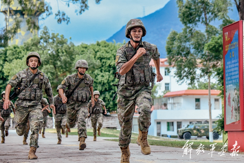 武装5公里训练中,官兵你追我赶。