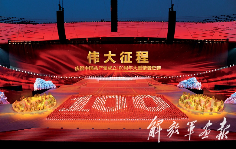 6月28日晚,北京,国家体育场灯光璀璨、人声鼎沸。习近平等党和国家领导人同约2万名观众一起观看文艺演出《伟大征程》,共同庆祝中国共产党成立100周年。