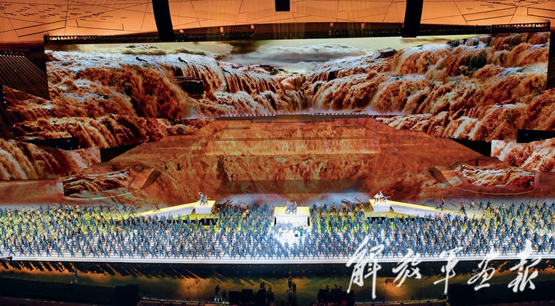 “我们的航天人正与‘嫦娥’为伴,在‘北斗’引领下,入住‘天宫’,遨游星辰大海……”在三维立体动画描绘下,诗朗诵与合唱《强国力量》激荡回响:“中国正在发生前所未有的巨变,亿万中华儿女正在把一个民族复兴的伟大梦想写进未来——未来已来!”