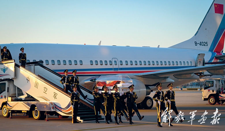 12月1日,江泽民同志的遗体从上海由专机敬移到达北京。 (摄影/新华社记者 李学仁)