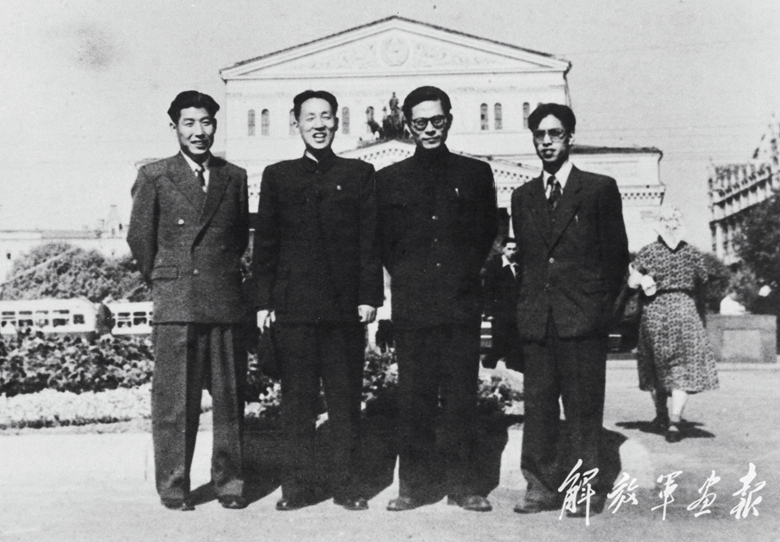 1955年至1956年,江泽民同志(右二)曾在莫斯科斯大林汽车制造厂实习。这是江泽民等在莫斯科合影。
