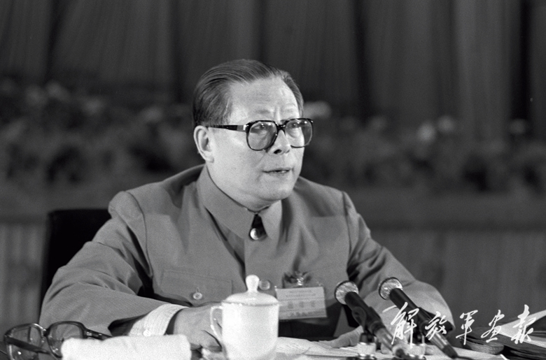 1989年6月,在中共十三届四中全会上,江泽民当选为中共中央政治局常委、中央委员会总书记。他在会上坚定指出:“党的十一届三中全会以来的路线和基本政策没有变,必须继续贯彻执行。在这个最基本的问题上,我要十分明确地讲两句话:一句是坚定不移,毫不动摇;一句是全面执行,一以贯之。”同年11月,中共十三届五中全会决定江泽民为中共中央军事委员会主席。1990年3月,在七届全国人大三次会议上,江泽民当选为中华人民共和国中央军事委员会主席。