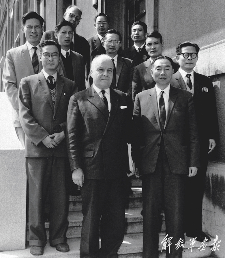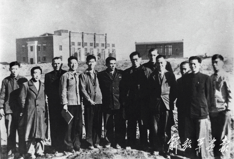 1956年,江泽民同志(左七)在长春第一汽车制造厂同援建一汽的苏联专家等合影。