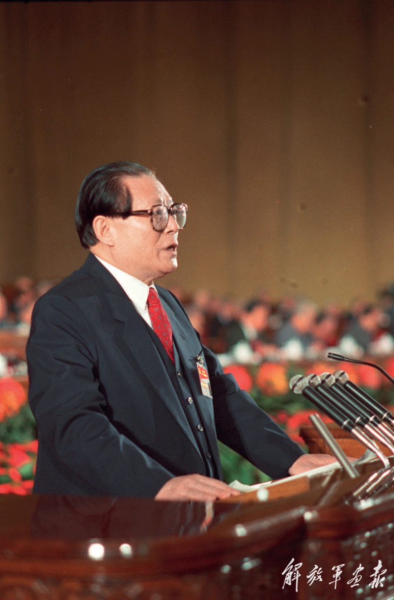 1997年9月12日,中国共产党第十五次全国代表大会在北京人民大会堂开幕。这是江泽民同志代表第十四届中央委员会作报告。