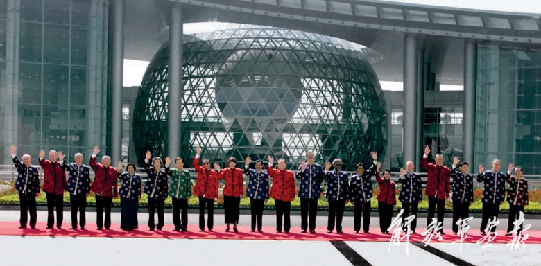 2001年10月21日,亚太经合组织第九次领导人非正式会议在上海举行。这是江泽民同志与参会的经济体领导人合影。