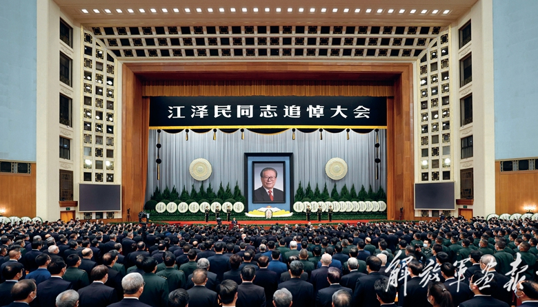 12月6日,中共中央、全国人大常委会、国务院、全国政协、中央军委在北京人民大会堂隆重举行江泽民同志追悼大会。(摄影/新华社记者 丁海涛)