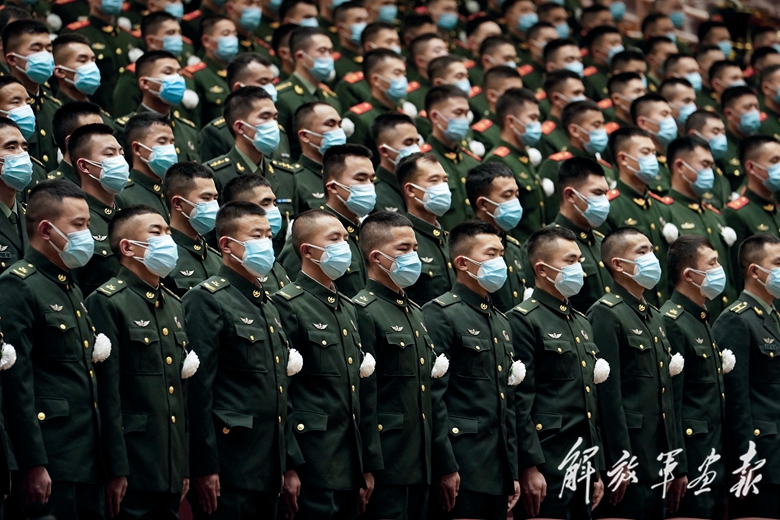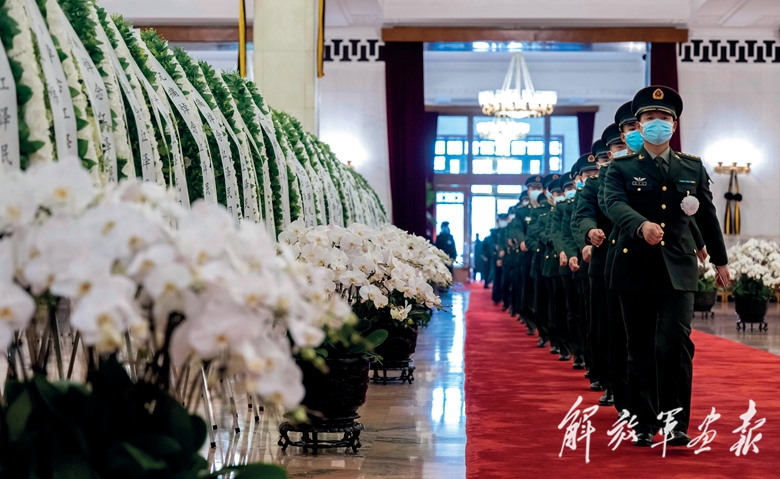 这是出席追悼大会的解放军代表步入人民大会堂大礼堂。(摄影/新华社记者 翟健岚)