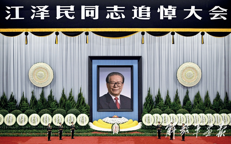 12月6日上午,中共中央、全国人大常委会、国务院、全国政协、中央军委在北京人民大会堂隆重举行江泽民同志追悼大会。(摄影/新华社记者 邢广利)
