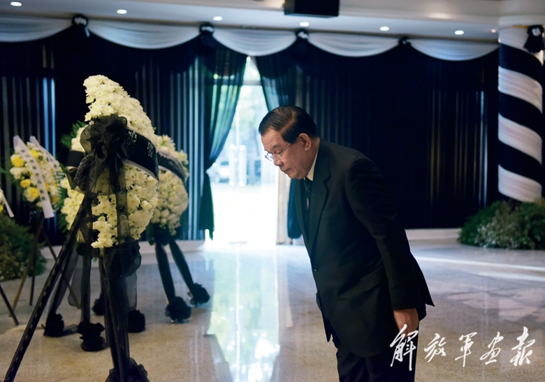 12月5日,柬埔寨首相洪森在中国驻柬埔寨大使馆吊唁江泽民同志。(摄影/万 坡)