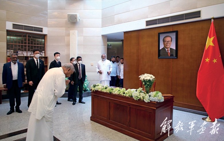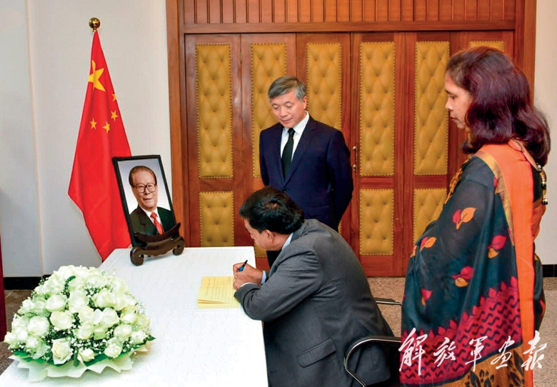 12月2日,斯里兰卡总统维克拉马辛哈在中国驻斯里兰卡大使馆吊唁江泽民同志。(摄影/萨米拉)