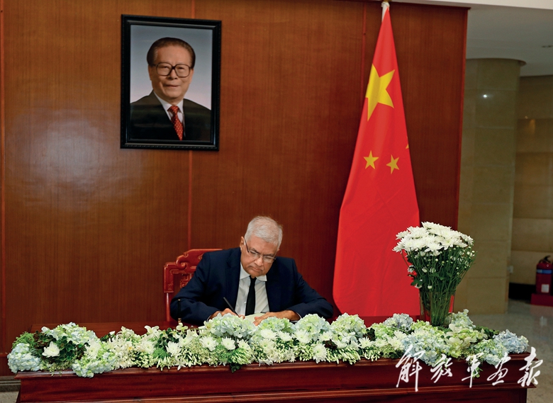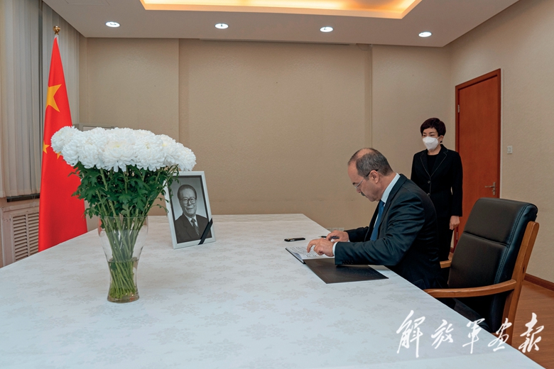 12月5日,乌兹别克斯坦总理阿里波夫在中国驻乌兹别克斯坦大使馆吊唁江泽民同志。(摄影/高 山)