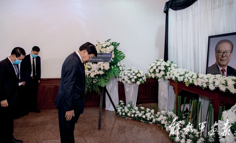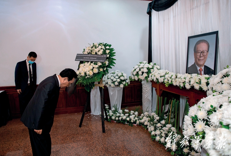 12月5日,老挝总理潘坎在中国驻老挝大使馆吊唁江泽民同志。(摄影/凯 乔)
