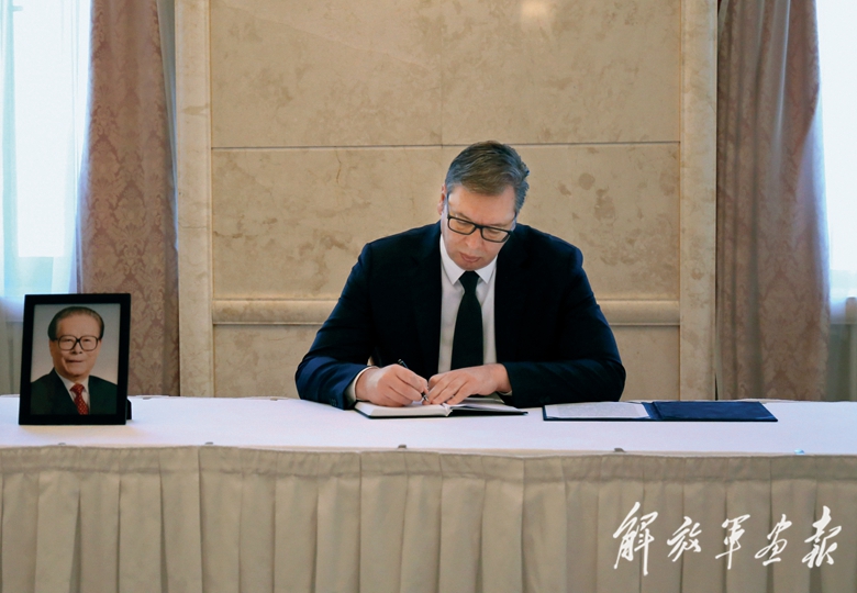 12月3日,塞尔维亚总统武契奇在中国驻塞尔维亚大使馆吊唁江泽民同志。(中国驻塞尔维亚大使馆供图)