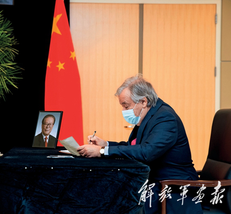 12月5日,联合国秘书长古特雷斯在中国常驻联合国代表团驻地吊唁江泽民同志。(摄影/新华社记者 王 迎)