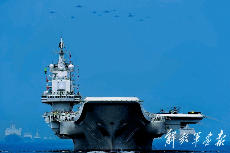 2018年4月12日,中央军委在南海海域隆重举行海上阅兵,辽宁舰航母编队精彩亮相。(摄影/张 雷)