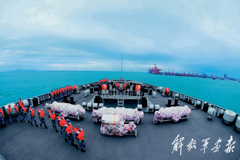2022年1月31日,应汤加王国请求,中国海军五指山舰、查干湖舰组成编队,星夜兼程将1400余吨灾区急需物资全部及时送达。(摄影/周演成)