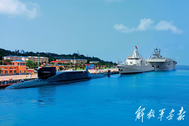 2021年4月23日,海军三型主战舰艇——长征18号艇、大连舰、海南舰在海南三亚某军港集中交接入列。(摄影/钟魁润)