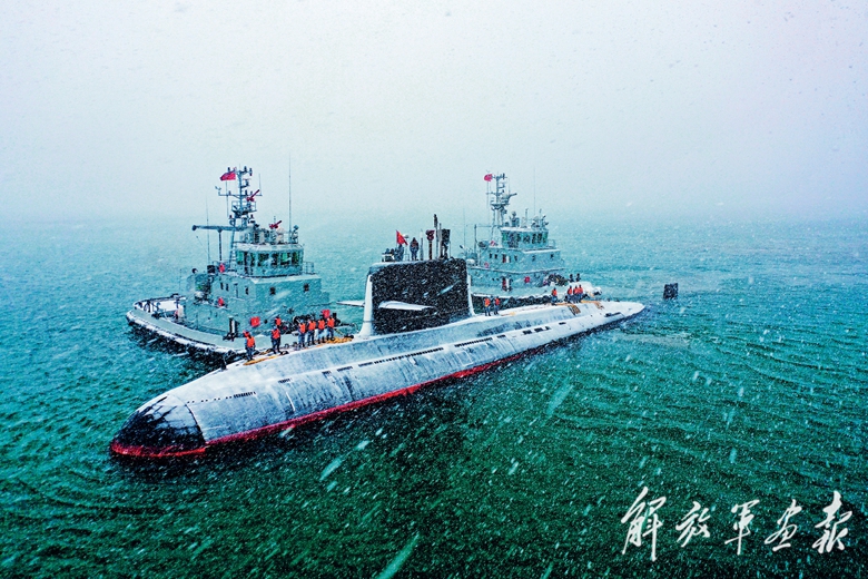 北部战区海军某潜艇支队官兵冒雪赴某海域开展实战化训练。(摄影/李凌风)