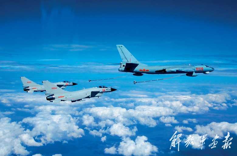 海军战机进行空中加油。(摄影/吴传军)