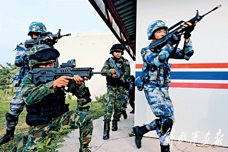 2016年5月,“蓝色突击-2016”中泰海军陆战队联合训练在泰国梭桃邑海军陆战队司令部拉开帷幕。(摄影/周启青)