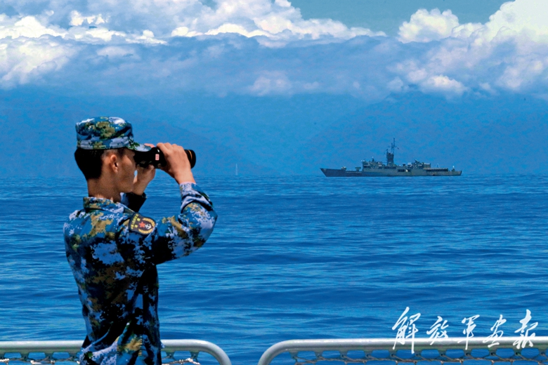 2022年8月,人民海军舰艇首次环绕台岛开展联合海空演训,向世界宣示——我军完全有决心有办法有能力维护祖国统一、捍卫国家主权和领土完整。