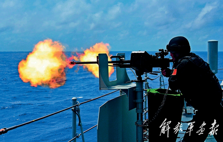南部战区海军远海联合训练编队在太平洋某海域进行实战化防空反导演练。(摄影/周启青)