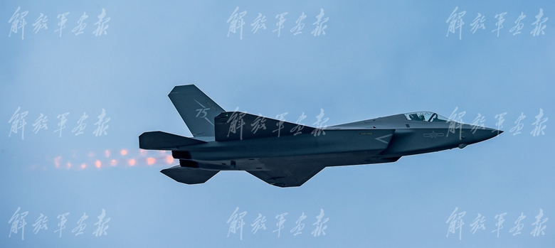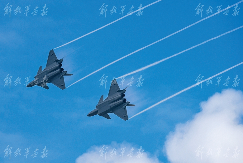 空军歼-20战机进行飞行表演。