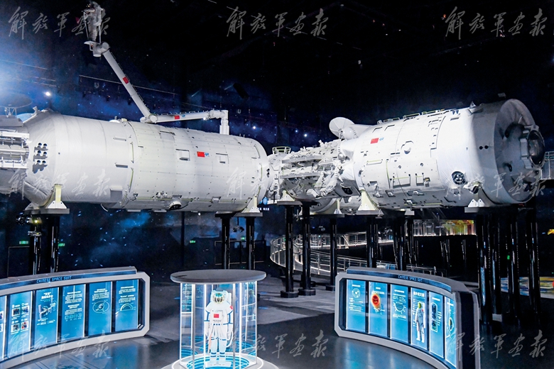 珠海太空中心展出“天宫”空间站T型1:1展示舱。