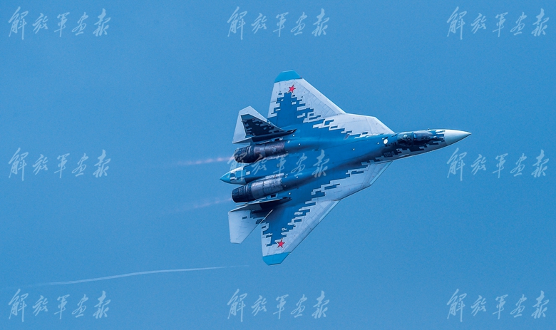 俄罗斯苏-57飞机进行飞行展示。