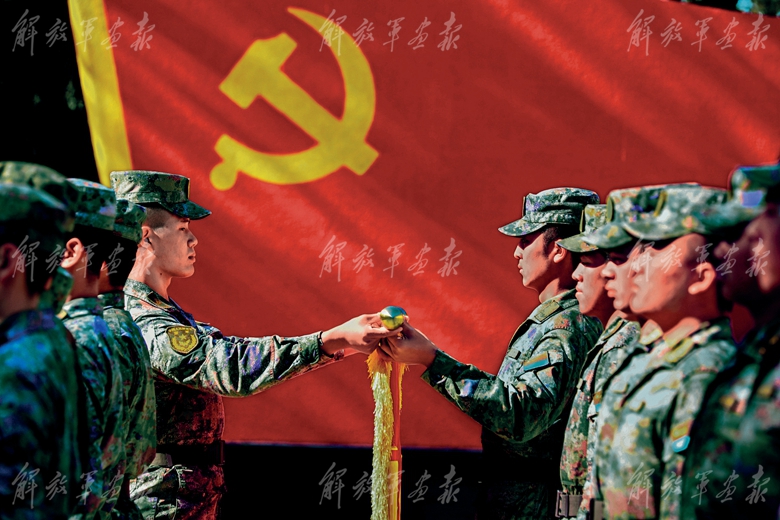 空军航空兵某团飞行二大队官兵向党旗宣誓,立志忠诚于党、奋斗强军。(摄影/余红春)