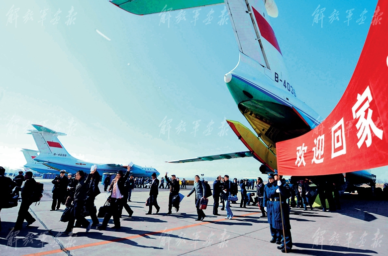 2011年1月,利比亚内战爆发,空军派出4架伊尔-76飞机,于2月27日飞赴利比亚执行接运中国在利比亚人员的任务。这是空军首次派运输机赴海外执行撤离我人员回国任务。(摄影/沈 玲)