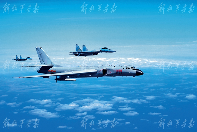 2017年11月,空军航空兵某师组织轰-6K等多型多架战机,飞越巴士海峡和宫古海峡开展远洋训练。(摄影/陈 亮)
