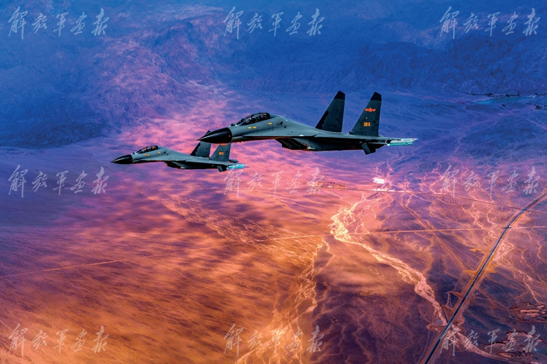 空军某部战机编队展开实战对抗训练。(摄影/杨 军)